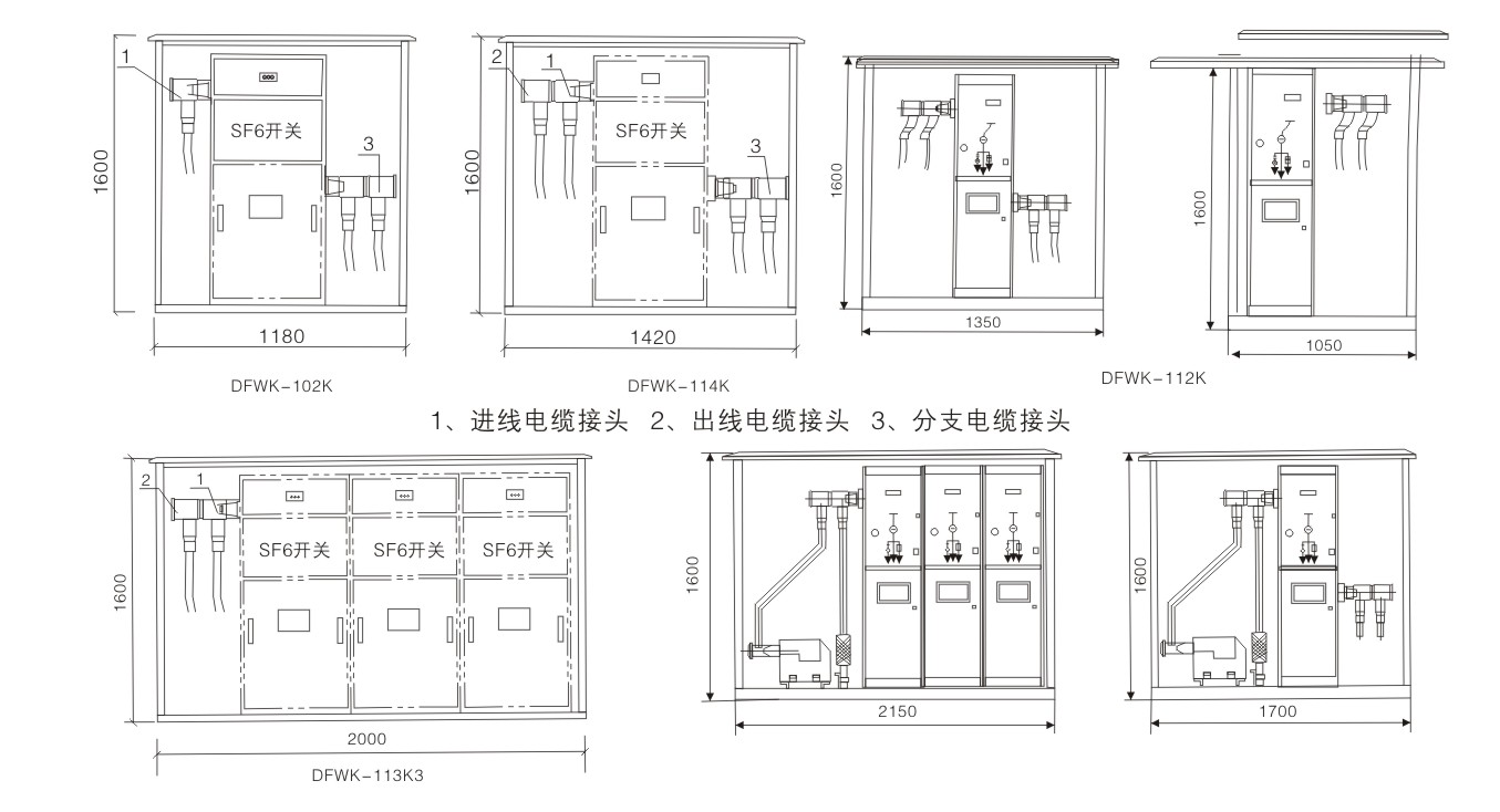 4、可配一臺(tái)或多臺(tái)SF6負(fù)荷開關(guān)。接線方式靈活多樣,分支出線最多可達(dá)8回路;