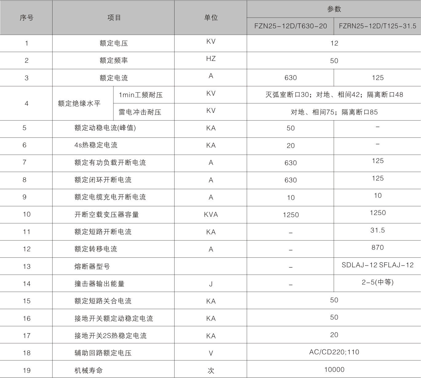 FZN25、FZRN25型真空負荷開關(guān)和組合電器,適用三相交流50Hz環(huán)網(wǎng)或終端供電和工業(yè)用電設備中,作負荷控制和短路保護之用,負荷開關(guān)分合負荷、閉環(huán)電流、空載變壓器和電纜充電電流。組合電器可以開斷直至額定短路電流的任何電流。采用直動式隔離斷口和真空滅弧室聯(lián)動。具有手動和電動功能。