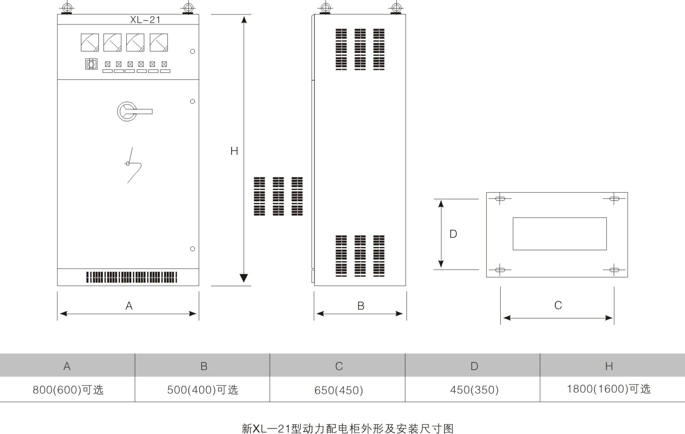 新型XL-21動力箱廣泛用于發(fā)電廠及工礦企業(yè)中,在三相交流500V以下三相三線、三相四線、三相五線等配電系統(tǒng)中作動力或照明配電之用,系戶內(nèi)靠墻安裝,屏前操作,屏前檢修;箱體為全封閉結(jié)構(gòu),由C型材或8MF型材拼裝而成。箱內(nèi)采用新型旋轉(zhuǎn)式負荷隔離開關(guān),可帶負荷操作,正面門上裝有電壓、電流指示儀表以及信號燈、按鈕、轉(zhuǎn)換開關(guān)等主令元件。本配電箱內(nèi)采用自行設(shè)計的新型組件,結(jié)構(gòu)緊湊,造型美觀大方,維護方便,多種接線方案可供用戶選擇,是替代老型XL-21動力箱的理想產(chǎn)品。
